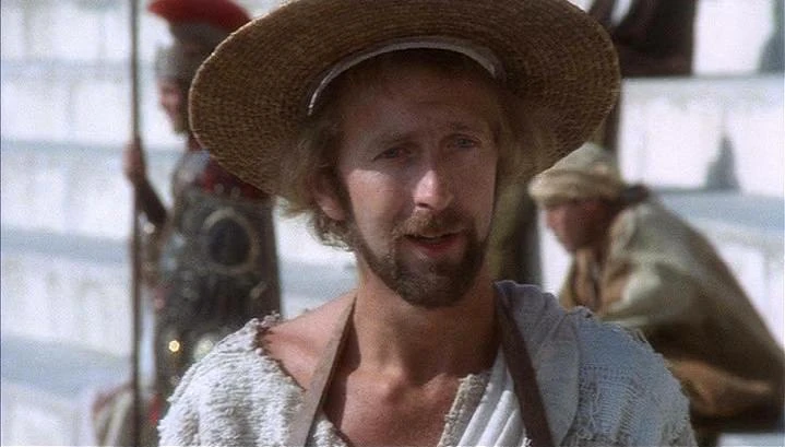 The focus therefore shifted to a separate individual born at the same time, in the neighbouring stable, who is subsequently mistaken for the messiah. When Jesus does appear in the film (as he does on two occasions, first in the stable, and then later speaking the Beatitudes - Matt 5:1-48), he is played straight (by British actor Kenneth Colley) - the comedy begins when members of the crowd mishear his statement “Blessed are the Peacemakers” (“I think he said, 'blessed are the cheesemakers'”).